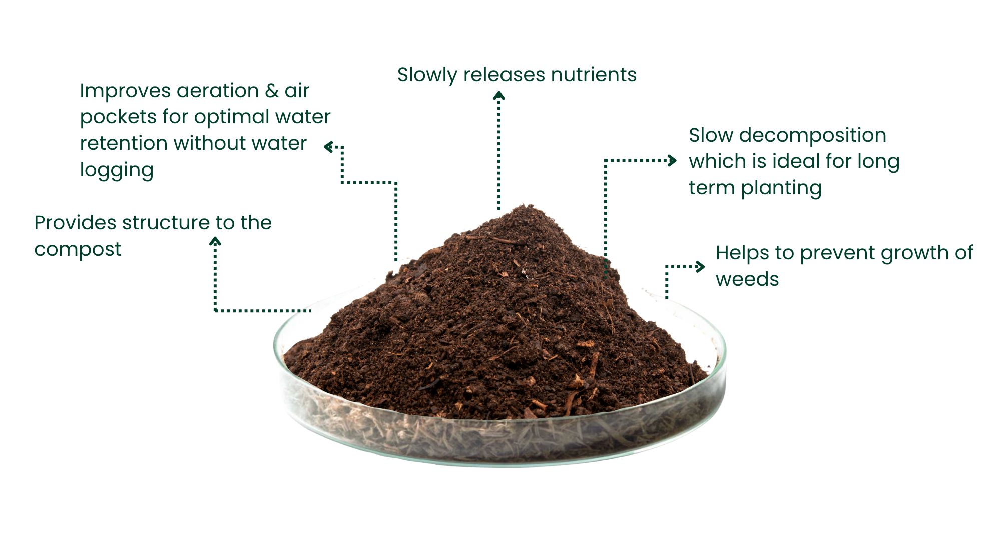 - The wood fibres provide long-term structural stability to the compost and helps to prevent waterlogged compost by improving drainage.